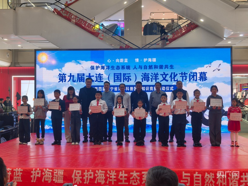 央广网大连12月4日消息(记者刘培俊 见习记者易博闻)11月30日下午,2025年“6·8世界海洋日暨全国海洋宣传日”系列活动收官之作——第九届大连(国际)海洋文化节闭幕暨辽宁省第四届海洋科普国防知识竞赛启动仪式,在大连市高新园区锦辉商城一楼举行。活动以“心·向蔚蓝、情·护海疆,保护海洋生态系统,人与自然和谐共生”为主题,凝聚社会各界力量,为海洋强国建设注入大连动能。