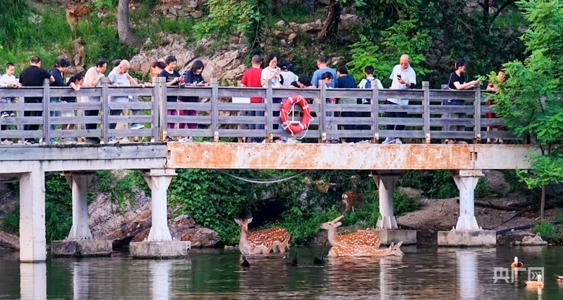 游客观赏梅花鹿(央广网发 马天旭 摄)