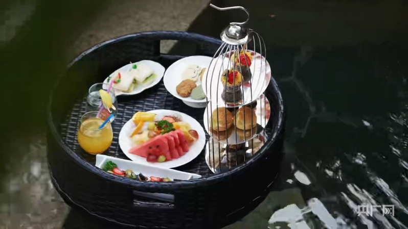 温泉酒店室内泡池的特色餐点(央广网见习记者 易博闻 摄)