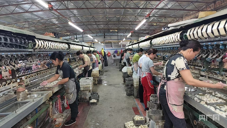 在蓉花山镇大连东署蚕丝制品有限公司的生产车间,空气中弥漫着独特的茧香。雪白的蚕茧在分拣女工灵巧的指尖快速流转;煮茧锅里热气蒸腾,缫丝机牵引出缕缕银丝;精加工区,工人们屏息凝神,确保每一片蚕丝都达到上乘品质。生产线全速运转,机器低鸣,奏响的是订单按时交付的进行曲。