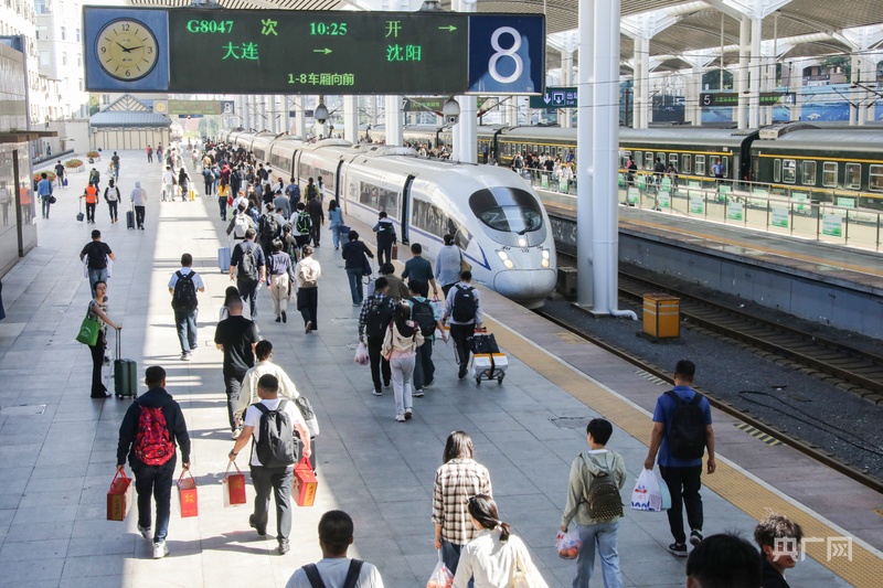 央广网大连10月6日消息(记者刘培俊 见习记者丁一 易博闻)秋日的大连站,人潮比想象中来得更早一些。中秋国庆“双节”假期开启,拖着行李箱的学生、牵着孩子的家庭、步履匆匆的商务客……每个人的眼神里都藏着一份对假期的期待。沈阳局集团有限公司大连站数据显示,这个假期大连预计发送旅客79万人次,9月30日更是迎来近10万人的客流高峰。