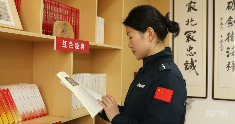 海警女执法员读书学习(央广网发 辽宁海警局供图)